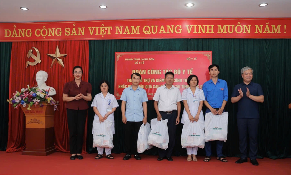 Nhân dịp này, lãnh đạo Bộ Y tế, Báo Sức khỏe và Đời sống đã trao hỗ trợ người dân tỉnh Lạng Sơn bị ảnh hưởng cơn bão số 3 với tổng giá trị trên 2,5 tỷ đồng. Công đoàn Y tế Việt Nam trao tặng 600 triệu đồng cho cán bộ y tế tỉnh (trong đó gồm 54,5 triệu đồng tiền mặt); Cục Quản lý khám chữa bệnh, Bộ Y tế trao tặng trang thiết bị y tế trị giá 50 triệu đồng, Công ty Cổ phần Dược phẩm FPT Long Châu trao tặng 2.000 cơ số thuốc cho ngành y tế tỉnh… để hỗ trợ kịp thời cho các cơ sở y tế, cán bộ, người dân bị ảnh hưởng của cơn bão số 3 với mong muốn chia sẻ, hỗ trợ các đơn vị, người dân vượt qua khó khăn.
