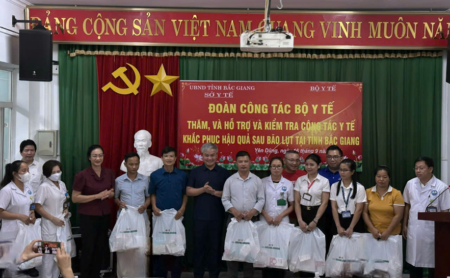 Ngày 16/9, Đoàn công tác của Bộ Y tế, Báo sức khỏe và đời sống cùng Công đoàn Y tế Việt Nam và các nhà tài trợ đồng hành đã tiếp tục đến với 2 tỉnh Bắc Giang và Lạng Sơn để trao tặng quà cho người dân cùng cán bộ y tế bị thiệt hại sau bão lũ.