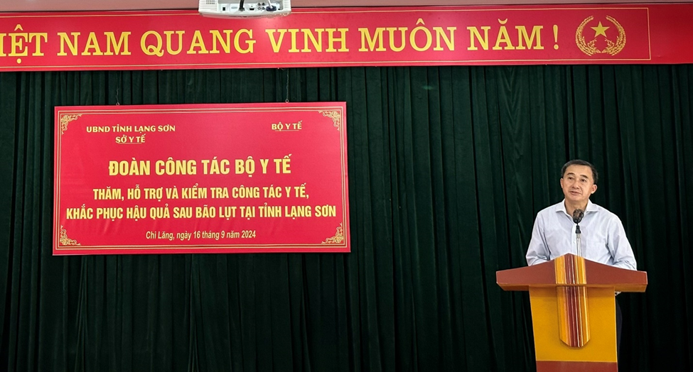 Giáo sư, Tiến sĩ Trần Văn Thuấn, Thứ trưởng Bộ Y tế phát biểu thăm, kiểm tra công tác y tế, khắc phục hậu quả bão lụt tại tỉnh Lạng Sơn