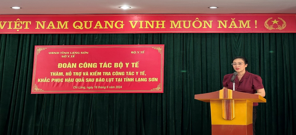 Chiều cùng ngày, đoàn có buổi làm việc và trao quà tại tỉnh Lạng Sơn một trong những tỉnh bị ảnh hưởng nặng nề sau cơn bão. Đối với ngành y tế tỉnh có 4 trung tâm y tế huyện ngập nước (trong đó có Trung tâm Y tế huyện Chi Lăng), 9 trạm y tế bị ngập; một số thiệt hại như đổ tường rào, tốc mái, vỡ kính, hệ thống xử lý chất thải lỏng hỏng do mưa ngập… thiệt hại trên 2 tỷ đồng. Thông qua việc nắm bắt tình hình khó khăn tại địa phương, đồng chí Thứ trưởng Bộ Y tế Trần Văn Thuấn gửi lời chia sẻ với những thiệt hại do cơn bão số 3 gây ra trên địa bàn tỉnh Lạng Sơn nói chung và ngành y tế nói riêng. Đồng chí mong muốn cấp ủy, chính quyền tỉnh, ngành y tế tiếp tục tích cực triển khai các biện pháp khắc phục hậu quả bão lụt.